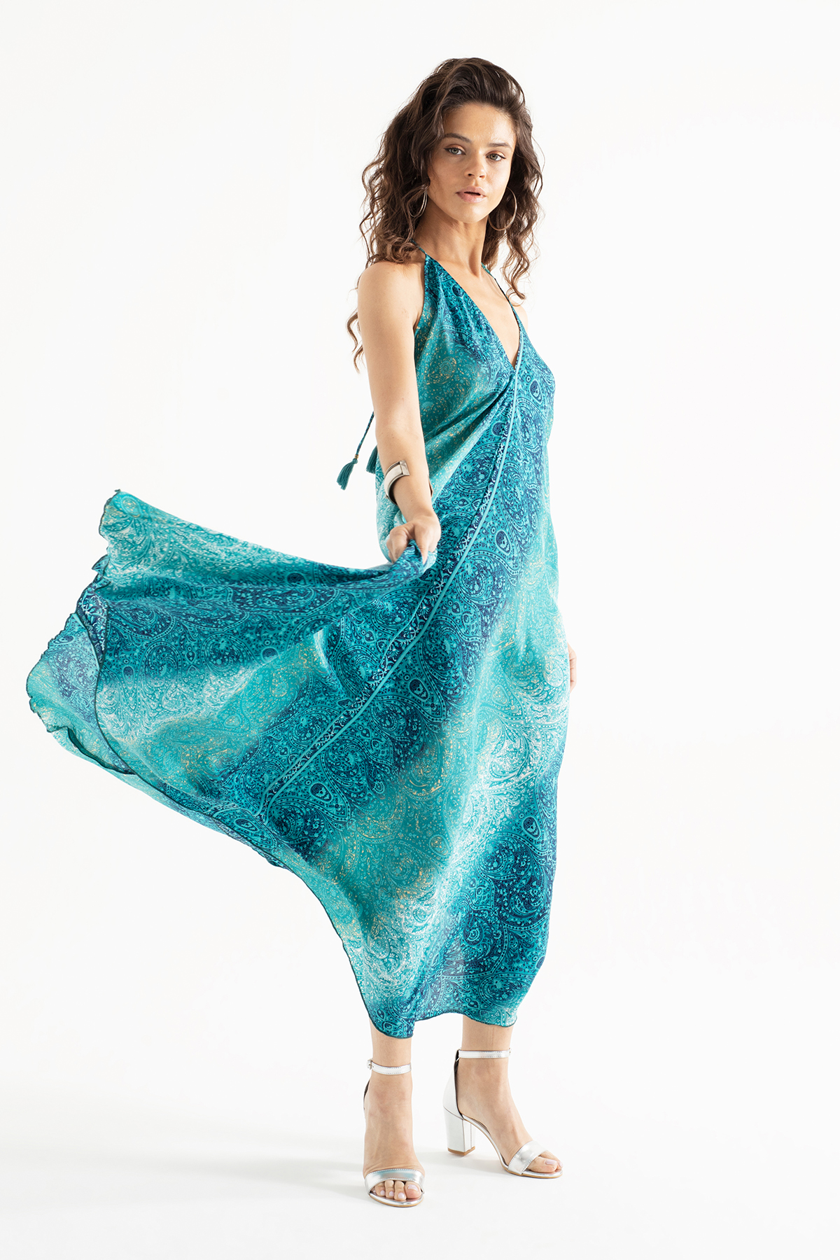 ASDN SIRT DEKOLTELİ İPEK ELBİSE