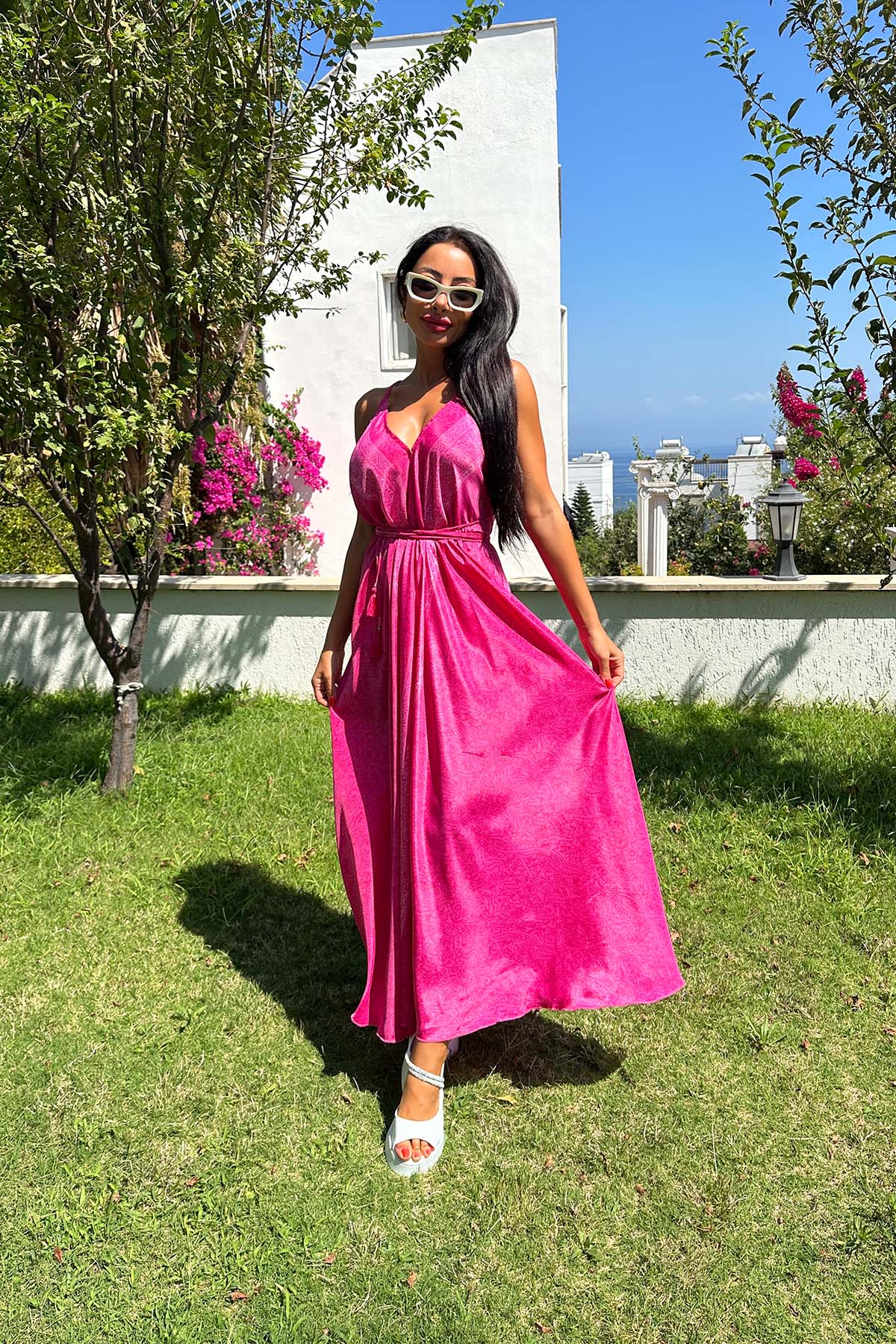 ASDN SIRT DEKOLTELİ ASİL İPEK ELBİSE