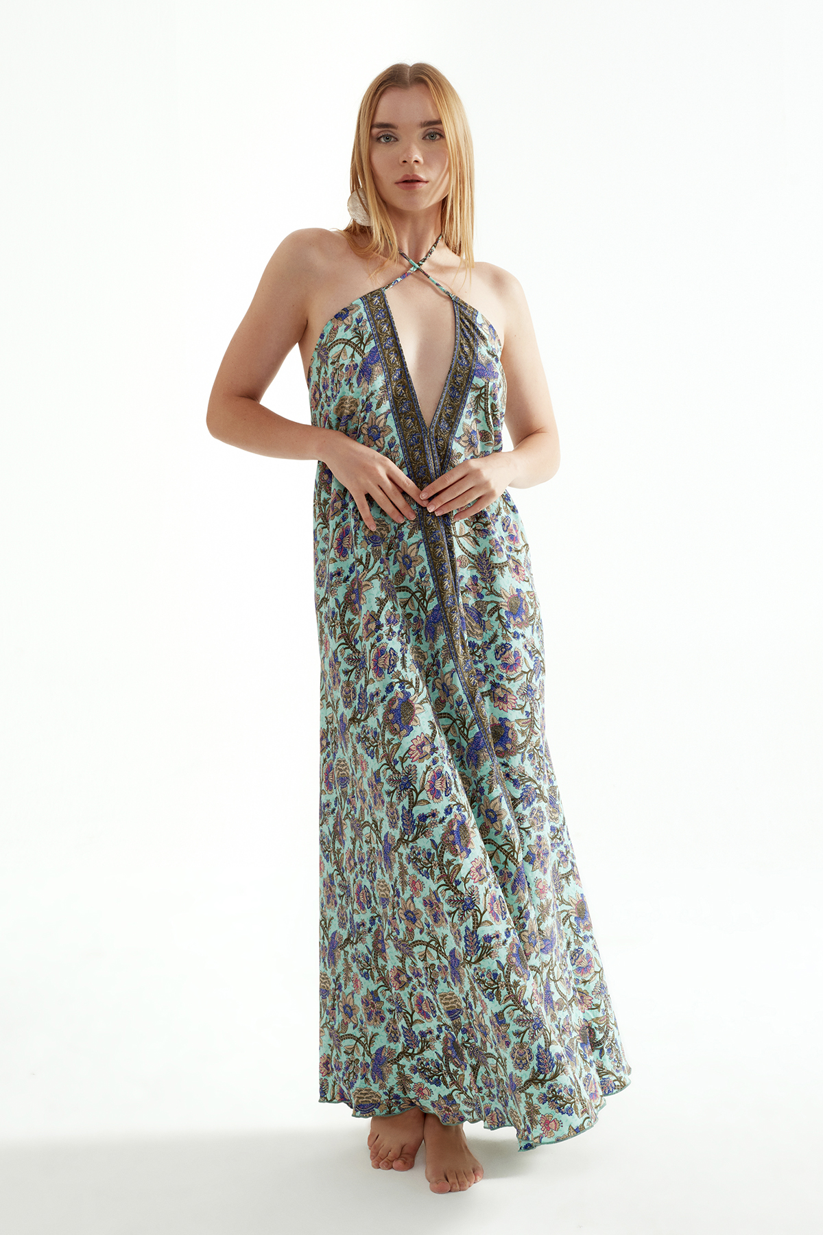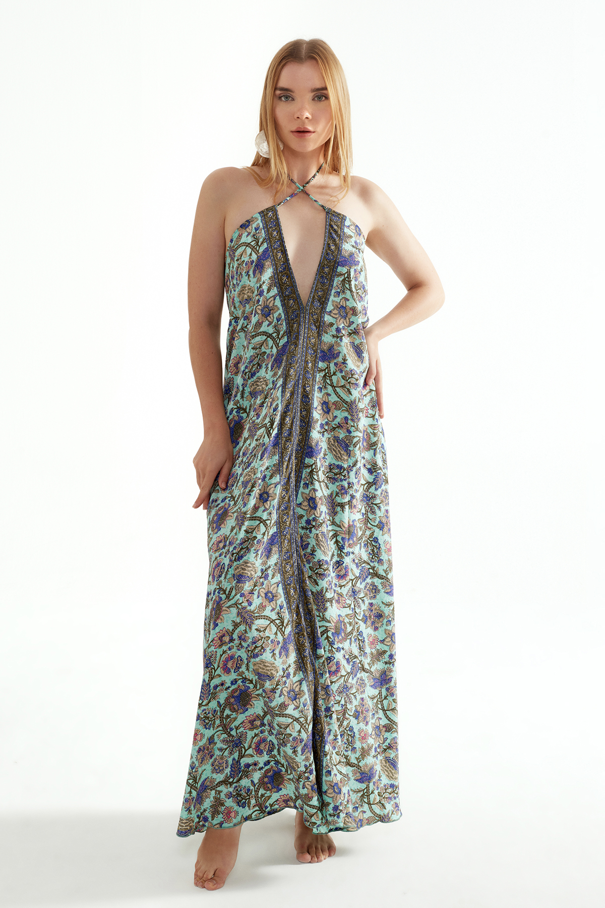 LD1113T ASDN SIRT DEKOLTELİ İPEK ELBİSE